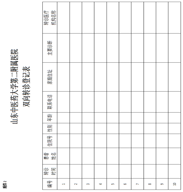 附件2:《山东中医药大学第二附属医院双向转诊登记表》