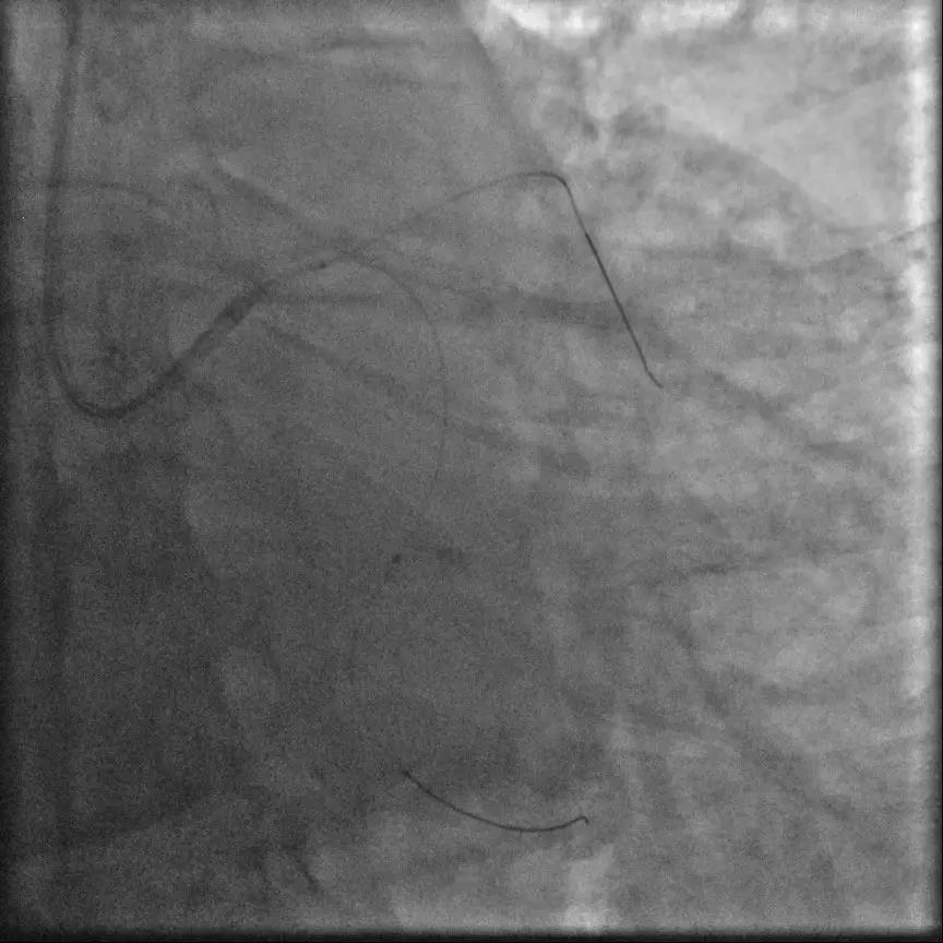 据了解,该患者今年四月因急性心梗在我院进行急诊PCI治疗,于RCA顺利放置支架3枚,术中冠脉造影检查提示前降支(LAD)开口起100%慢性闭塞。这种情况不处理,患者心功能势必受到影响,并有猝死风险。