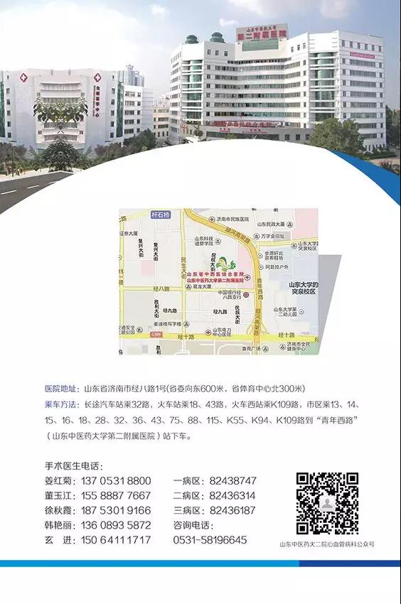 山东中医药大学第二附属医院心血管病科为国家中医药管理局“十一五” 中西医结合临床重点学科建设单位、“十二五”重点专科建设单位;山东中西医结合学会介人心脏病专业委员会主委单位、济南市脑心同治专业委员会主委单位;国家心力衰竭医联体成员单位、国家心血管病中心高血压专病医联体成员单位,山东中医药大学复杂冠脉病变治疗中心,上海交大房颤诊治中心山东分中心。