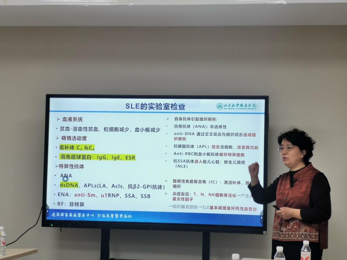 舒强教授以《如何用自身抗体诊断风湿病》为题,从风湿病的分类入手,系统讲解了各种自身抗体在风湿免疫疾病中的诊断价值。舒教授特别强调了自身抗体检测对非风湿专科医生的实际意义,掌握自身抗体的合理筛查思路,有助于及时识别潜在的风湿免疫病。此外,她指出自身抗体阳性不等于确诊风湿病,阴性也不能完全排除,了解这些抗体的敏感性和局限性,可以避免过度诊断或漏诊。最后,舒教授结合具体实例,讲解了抗体与临床表型的关联,内容条理清晰,反响热烈。
