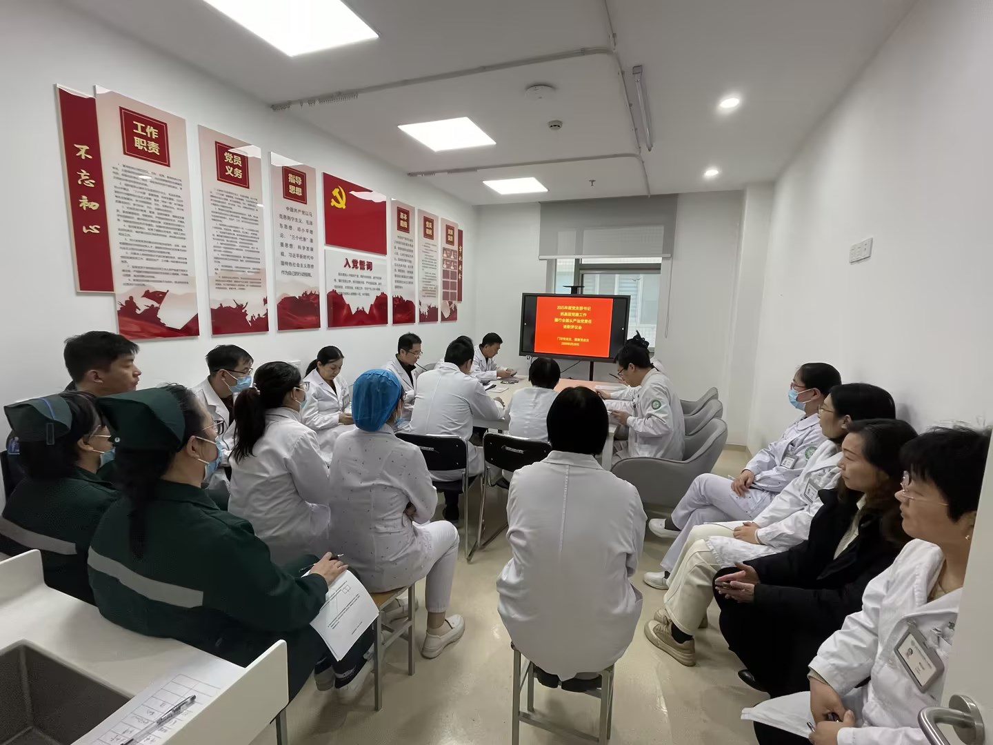 为深入贯彻落实习近平新时代中国特色社会主义思想、党的二十届四中全会精神、习近平总书记关于党的建设的重要思想,进一步压实党支部书记全面从严治党第一责任人职责和抓基层党建第一责任人责任 ,按照学校和医院党委统一部署。1月28日下午,门诊党总支、康复党总支(第五考核组)在门诊第三党支部党员活动室开展了支部书记全面从严治党和抓基层党建述职评议。两个党总支的总支书记、支委、党支部书记、党员干部、职工代表共25人参加了评议会。