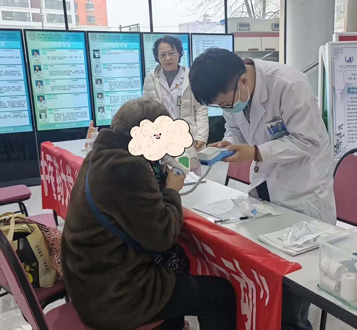初春乍暖还寒,义诊现场却暖意融融、群众络绎不绝。本次活动打破传统坐诊模式,主动将医疗服务送到群众身边。支部依托内科专业优势,设置肺功能检测、血压血糖测量、中医适宜技术体验、健康咨询等服务区,为群众提供“一站式”健康筛查。