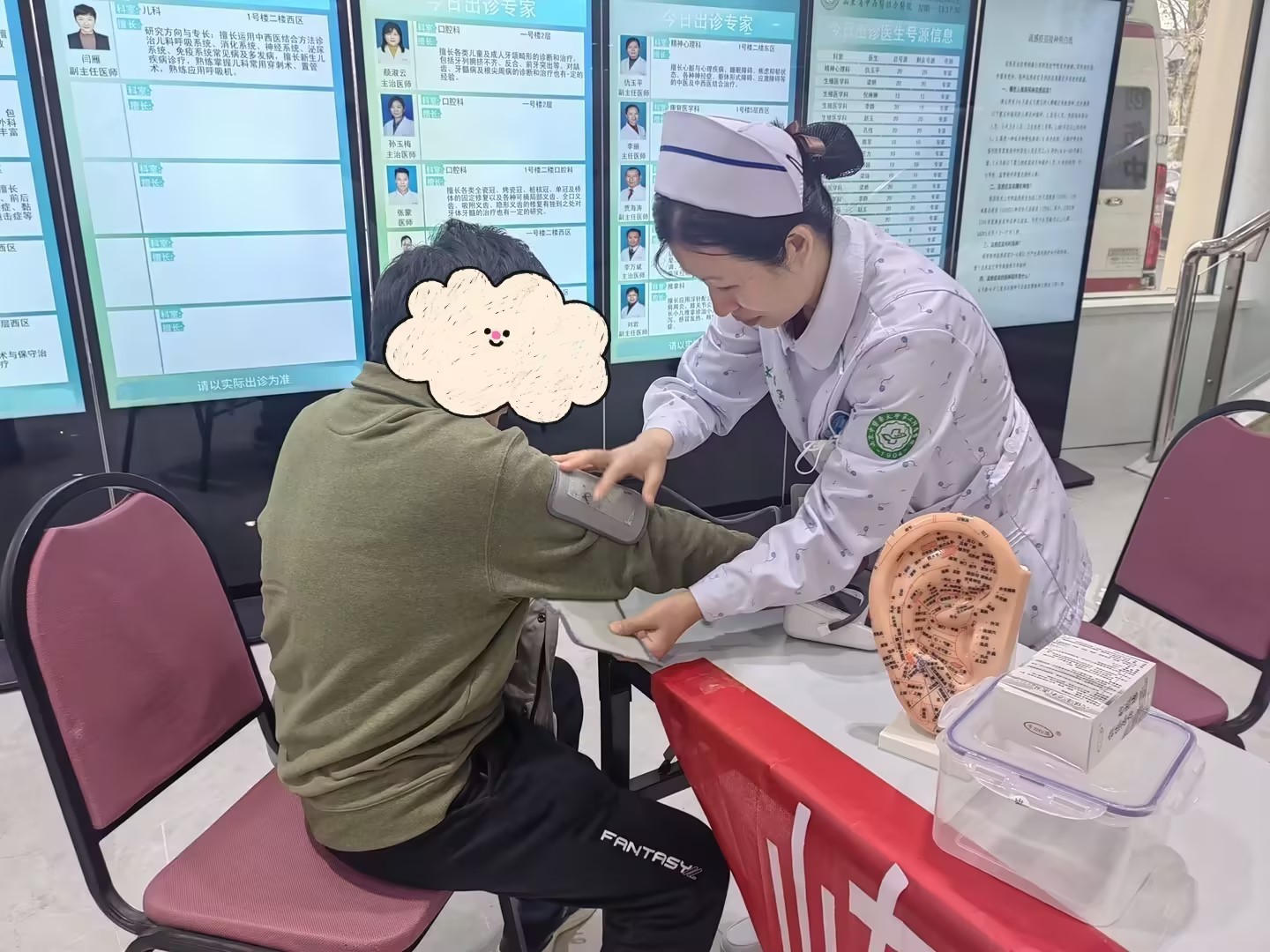 在中医适宜技术体验区,医护人员为群众测量血压血糖,提供耳穴压豆、穴位按摩等中医特色服务,用通俗语言讲解保健知识,针对高血压、糖尿病等慢性病,从饮食、运动、用药等方面给予个性化指导,让群众在家门口享受到优质中医药服务。